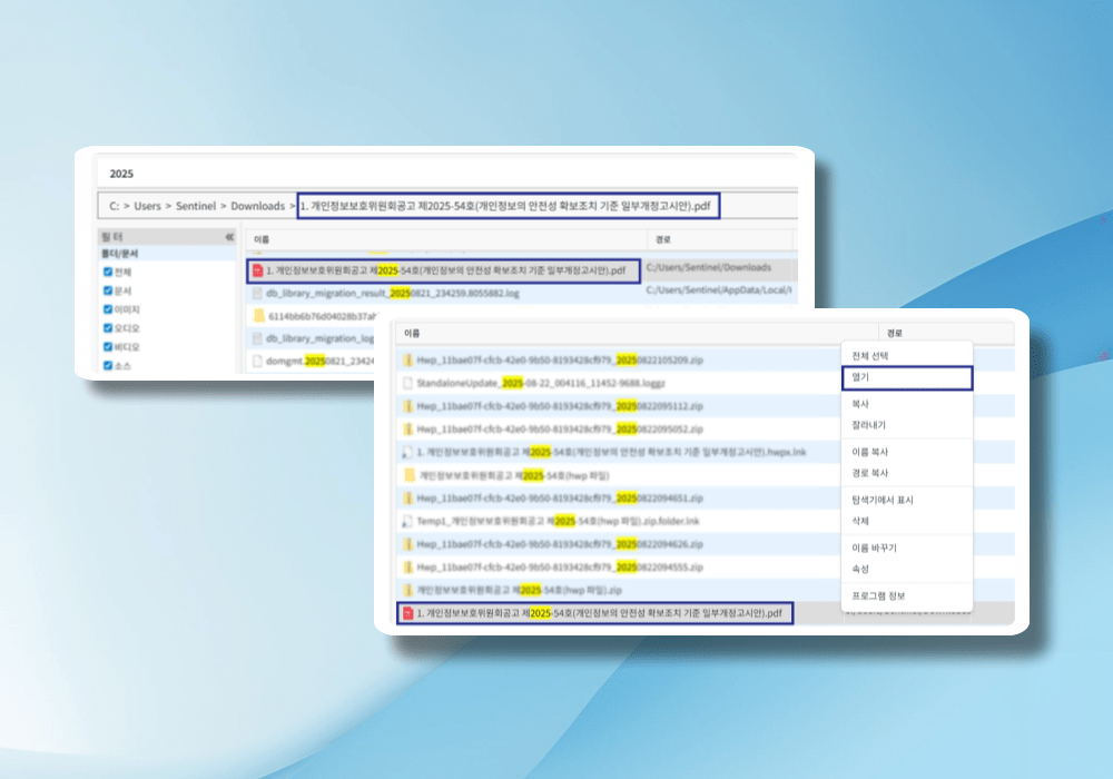 안내된 경로에서 파일을 클릭하거나 파일의 제목을 우클릭하여 빠른 열람이 가능합니다.