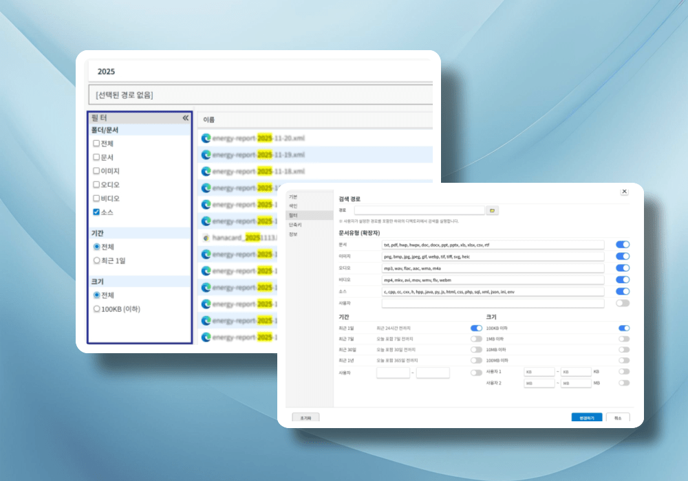 원하는 기준으로 내게 딱 맞는 맞춤형 문서 검색 필터를 설정해보세요.